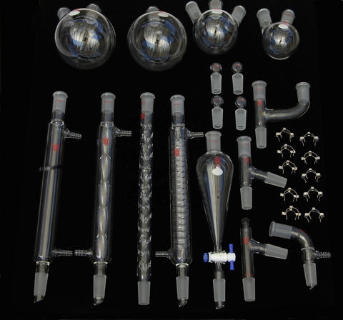 Kit per laboratorio di chimica organica in vetro con giunti 24/40 33 pezzi, Set di chimica da laboratorio